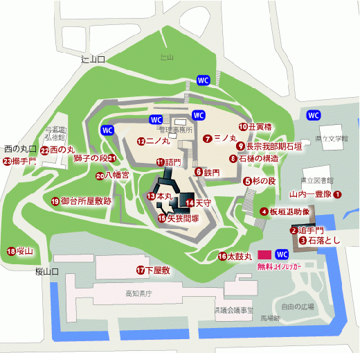 從高知站可搭乘公車或當地電車至高知城。