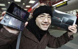 日本電玩大廠任天堂(Nintendo)企圖重新搶回掌上電玩市場,該廠推出世界第1款不需配戴特殊眼鏡輔助的「裸眼」3D掌上電玩遊戲機3DS今天在日本開賣,不少民眾紛紛搶先掏錢購買這台充滿話題性的掌上電玩。