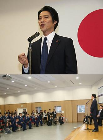 新浪娛樂訊 北京時間10月9日消息,據日本媒體報道,偶像組合V6成員岡田準一為宣傳主演電影《SP 野望篇》到廣島縣警察學校擔任教官一天,堤真一等其他三位主演也來到活動現場,在警察學校內的講堂,共有110為全校師生參加了這次活動。