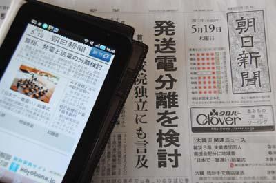 就在18號日本朝日新聞以「隨時都可以、哪裡都可以、全家一起來」=「いつでも、どこでも、家族みんなで」、「確時的情報快速、享受、簡單易懂」=「確かな情報を速く、楽しく、わかりやすく」、這樣的理念展開了新的一步,「朝日新聞電子報」=「朝日新聞デジタル」開跑了。原本已有訂購朝日新聞的讀者,只要再多1千元日幣就可以多份電子報了ㄛ!若不是原訂戶,每月也只須要3800元日幣即可輕鬆享有,金划算!