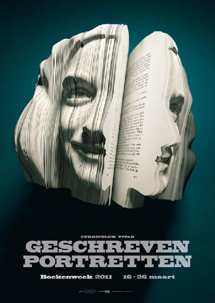 每年荷蘭CPNB (CollectivePromotion Dutch Literature)都會舉辦書展來推廣文學,每年都會有不一樣的主題,而這次的主題是自傳「(auto)biology」,設計師Van Wanten Etcetera創作了一系列的活動海報「Written Portraits」直接立體的把作者的臉給秀出來,見書如見其人,把這次的主軸表現得淋漓盡致阿!