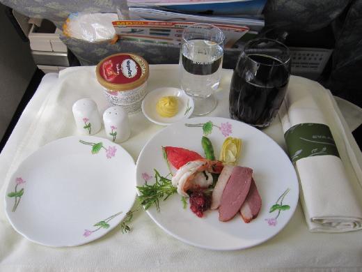 而今年這次的升等我也整個很意外,由於第一次開放幫親友們大採購,我只想趕快擺脫沉重的行李,趕緊把握最後時間逛機場商店街,看看還有沒有什麼想要買的書,因為台灣買日文書真的粉貴捏。其實我實在是有點小沒耐性,該班機根本還沒開櫃,大概還差個幾分鐘,我就衝去問可不可以先讓我託運行李,沒想到對方答應耶,好開心。也不曉得是不是因為我有辦長榮的會員卡呢(感謝這次叫我記得要辦會員卡的朋友),總之就這麼莫名其妙的被升等了。這次的餐,我覺得很好吃呢!