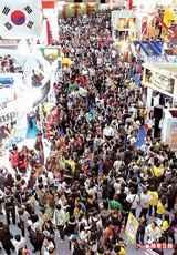 日本包下將近100個攤位,準備狂送好禮拼觀光經濟,大型舞台+約2萬份的禮物~~乘車IC卡~東日本鐵道周遊券~~還有可以跟武士花魁合照~~