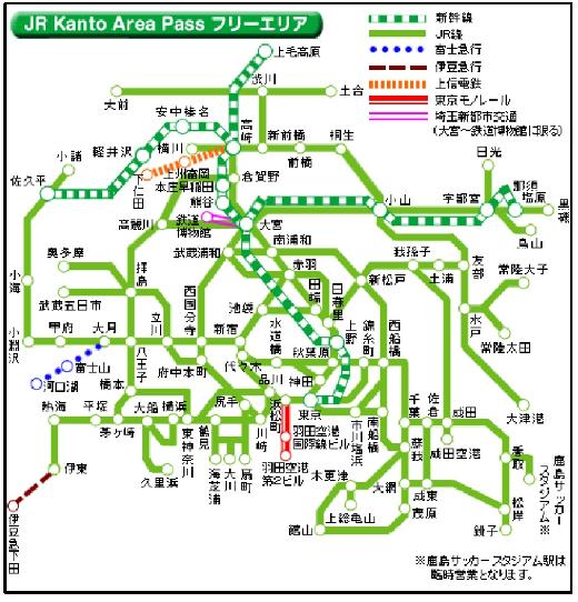 車票名稱:JR Kanto Area Pass(JR關東地區通票)