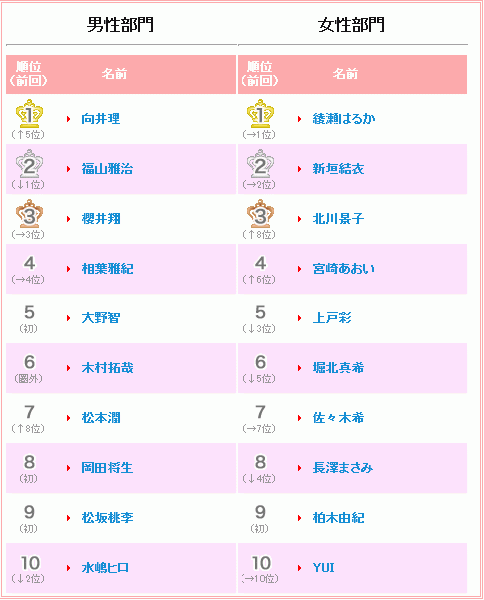 看看前三名 第2名的「新垣結衣」 第3名的「北川景子」