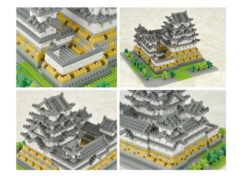 除了要玩就玩大的,大人們也愛挑戰孩子們做不到的,超迷你的玩藝。像是迷你模型、娃娃屋之類的。積木,現在也有超迷你版喔,不是大家熟知的樂高尺寸,也不是 便利商店推出的旅遊全台景點 贈品款,而是以 12 歲以上的消費者為目標顧客群,每一個都只有 4mm x 4mm 大小的超迷你積木。這種尺寸,能做出更精緻細微的作品來,像是,我最愛的姬路城!