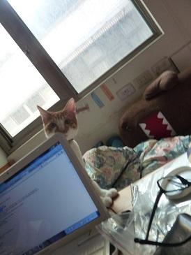 剛剛本來要嚇貓(壞心眼)結果被貓撞到臉,