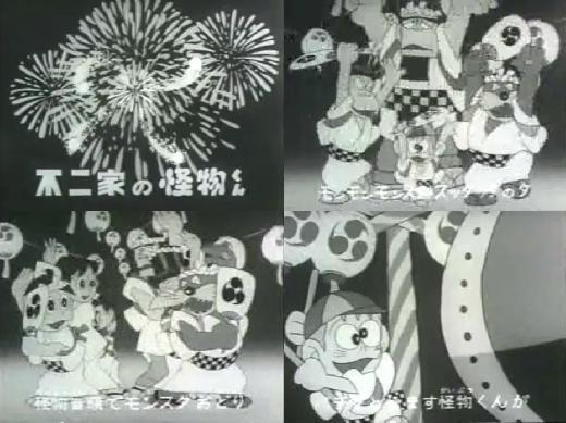 藤子不二雄 A的作品, 主角 怪物太郎與三位隨從: 吸血鬼、科學怪人、狼人在人間修行所發生的趣事與各種不同的 怪物戰鬥的少年漫畫, 主角 怪物太郎也可以自由的變形(ex:手伸長)或是變身,解決人間大大小小的事或是幫助好朋友小宏及小宏的姐姐(由於兩人長得稍像 怪物Q太郎的 主角和媽媽,但並無任何關聯)過去也被改編成動畫版(黑白),黑白時期與當時日本的『不二家的時間』合作(像黑白版 怪物Q太郎那樣),所以在黑白版片頭結尾可以看見不二家的吉祥物妹妹(抱歉不知道如何稱呼XD)和 怪物太郎一起出現,在歌曲的畫面也間接置入性行銷的有『不二家』字樣,當然不覺得奇怪。
