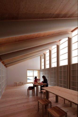 還有圖書館!(藝術家千住博捐獻)...我喜歡這木頭搭白色~