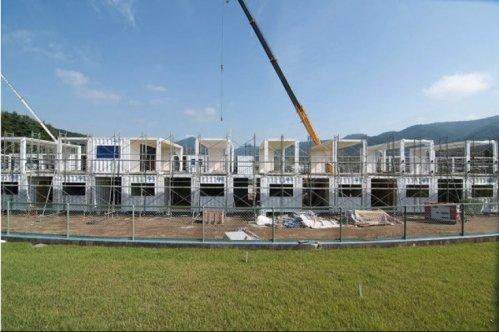 但是日本的土地小...為了於短時間之內提供大量的住所..於是坂茂提出了貨櫃住所的想法