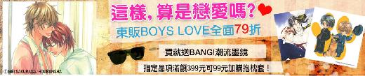 滿額加購說明: 凡購買東販BL參展指定品項滿額399元,可以99元加購一個『豪華郵輪之戀』或『護的憂鬱』抱枕套,數量有限,搶完為止。因為抱枕套數量稀少,不提供單獨購買僅供滿額加價購。書單選購滿399元在購物車內即可選購您想加購的款式,若款式無顯示,表示已售完 金石堂網路書店 這樣算是戀愛嗎?東販BL系列79折 東販的BL小說漫畫都79折 金石堂上還有詳細的分類喔 可以依照喜好選書~