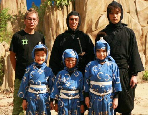 三池崇史 監督(左上)、山田伝蔵先生役の寺島進(中央上)、土井半助先生役の三浦貴大(右上)、きり丸役の林遼威(左下)、乱太郎役の加藤清史郎(中央下)、しんべヱ役の木村風太(右下)。(C)2011実写版「忍たま乱太郎」製作委員会