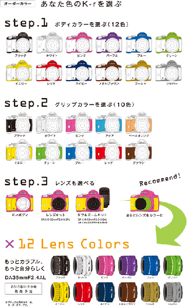 原本以為他是\"完全自由\"的配色....其實他是機身& 鏡頭 各給12 & 10個顏色讓你配~ 雖然說也很不賴~ 但是如果可以完全自由...而且還可以在網站上先挑顏色配好 並預覽 那就更讚啦~~完全的客製化~~ 不過可能因此單價會高很多吧__
