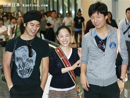 下午三點之後,深津繪里和李相日導演、妻夫木聰一同出現在機場。