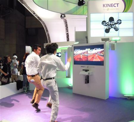 16日に開幕したゲーム見本市「東京ゲームショウ」の会場に展示されたマイクロソフトの体感型ゲーム「Kinect(キネクト)」の利用風景=16日、千葉市美浜区の幕張メッセ(三塚聖平撮影)