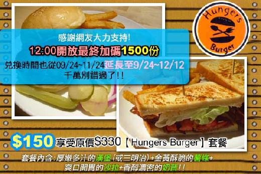 今日好康 $150享用原價$330【亨格斯美式廚房超值套餐】原味漢堡或BLT培根生菜番茄三明治+薯條+今日湯或沙拉+香濃奶昔