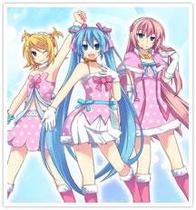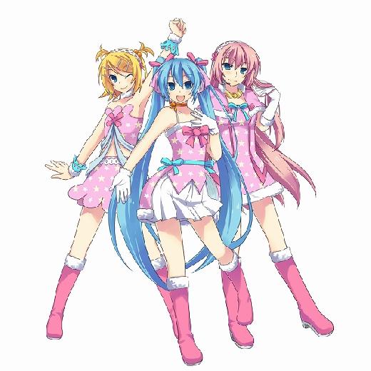 」「鏡音リン」「巡音ルカ」三人穿上「