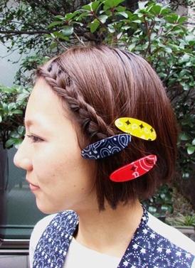 要令看似呆板的「草菇頭」更具個性,日本的街頭型女就會在耳畔或頭頂編上 三手辮,並戴上七彩繽紛的髮夾,增添不少夏日氣氛。