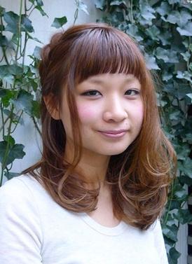 要在這在微曲長髮上加添點點時尚氣息,建議參考原宿女生的做法:配上燙貼的劉海,並把髮色染成淺啡色。
