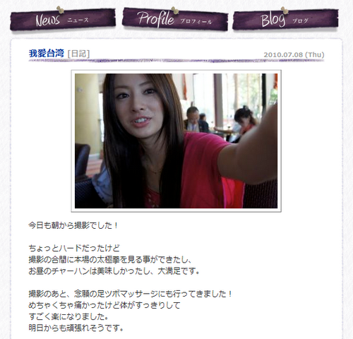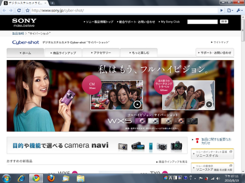 官網首頁上的兩則廣告影片,內容以台灣為主題,紀錄北川景子在台灣的旅遊過程。原來這是北川景子 7月來台灣宣傳新劇「一眼瞬間,再見愛」時,特別以 SONY DSC-WX5將她旅遊的過程記錄下來,當作 WX5的新廣告,廣告中可以看到國父紀念館、士林夜市、台北 101大樓等知名景點,除了表現 WX5的輕巧與錄影功能外,更大大展現了台灣的特色與美食。讓人感到格外興奮與親切。