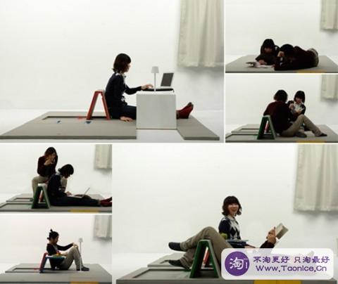 有沒有想過,如果有一天你家的地板能夠像變形金剛一樣,隨意的變動,那會怎麼樣? Kyoto Institute of Technology就來為你解答,這個剝離地板可以隨心所欲的把地板的一部分折疊或者平躺,你可以根據自己的需要折疊它,讓它變成椅子、床、餐桌、辦公桌……很有創造力的高科技玩具。