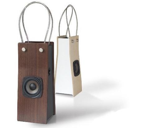 有沒有想過把音樂隨身攜帶? 沒錯,這並不是僅僅是想像!日本藝術家Yoshihiko Satoh設計的這個手提袋就帶有音樂播放的揚聲器功能,木色和白色兩款,中間是一個30W的音響,紙盆露在外面非常強悍,還可以直接接上IPod播放。很華麗的樣子。