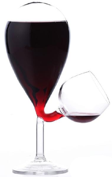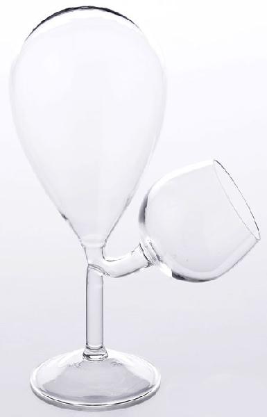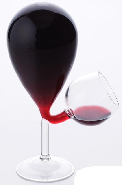 這個怪異的高腳杯是利用氣壓的原理來製作的,不用擔心杯子裏面的酒會溢出來,而且你喝一點,他就會自動給你加上,全自動服務。