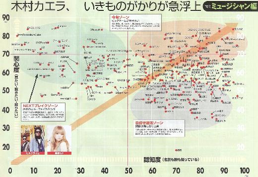 以圖來說就是越接近右上角的人or團體表示在日本越有人氣