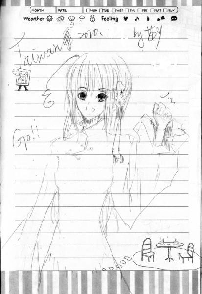 不過因為畫在奇異的筆記本上,所以有奇異的花紋背景...(遮臉)