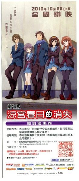 【涼宮春日的 消失】電影優惠券