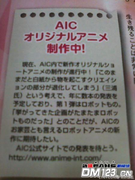 而在近一兩年正密謀大展拳腳的AIC,再次宣布他的新計劃——原創動畫計劃始動! 據最新的雜誌第18號「Otona Anime」中透露,AIC將會開始進行一連串的短篇原創動畫製作,而第一彈則將會以