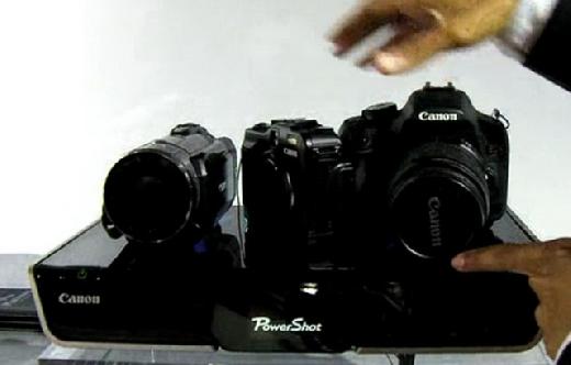 簡單來講,這個機器就是一種多媒體(主要是影像方面)的整合平台,可以讓不同C家產品中所記錄的影像資料 - 相片或短片 - 全部不需要經過記憶卡或其他連結方式,就可以傳送資料到這個平台。怎麼傳送?只要把相機或V8擺在平台上,機器偵測到時就可以了。