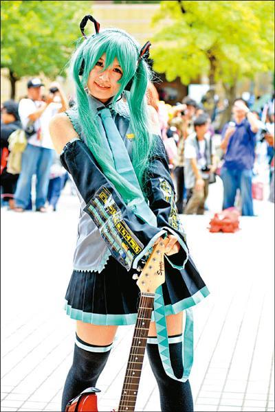 知名的Coser月燁,昨日以「初音」扮相出場。(記者叢昌瑾攝))