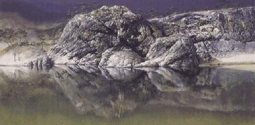 這是一個岩石架構在湖旁位於亞洲的緬甸,這張照片只能在一年當中的某一特別的日子才能拍攝得到,當太陽光映照岩石上的某個角度時才回出現這個景觀。