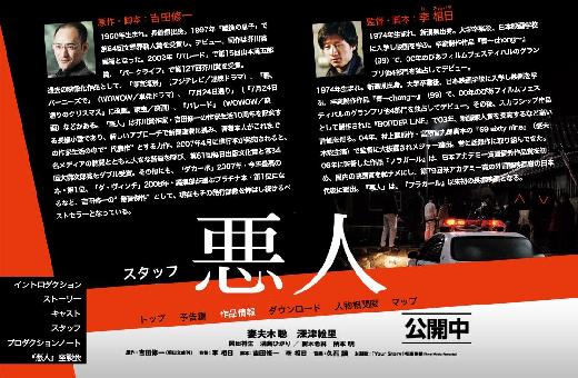 惡人的小說作者是吉田修一, 而電影的腳本作者之一也是吉田修一~
