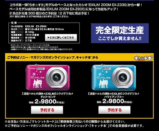 數位相機預定將會在12月開始發售,將會限定在同社通販的『キャッチ本』網站上接受預約。價格則是不太便宜的