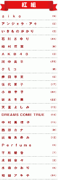 大晦日恒例の『第61回NHK紅白歌合戦』〔平成22年12月31日(金)午後7時30分~11時45分(9時25分から9時30分まで5分間のニュース中断あり)総合・衛星ハイビジョン・衛星第2、ラジオ第1〕の出場歌手が決定した。